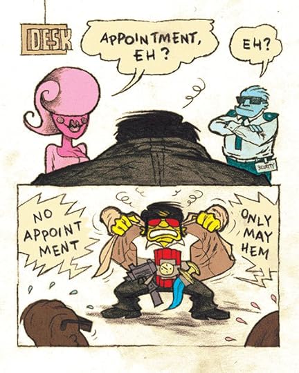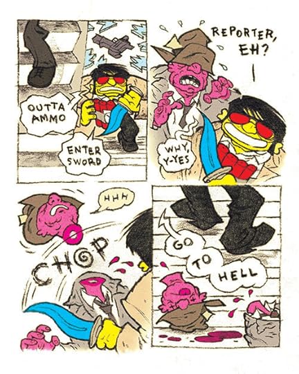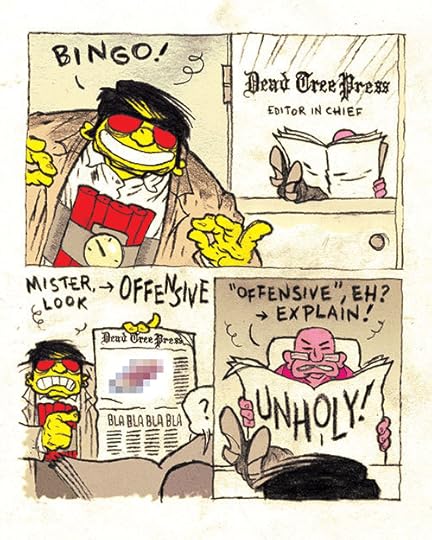 ‘Suicide Joe vs. Dead Tree Press’ blev oprindeligt trykt i Fantagraphics’ antologi ‘Kolor Klimax’ i 2012, udgivet på dansk i ‘Dokument’ (Aben Maler 2012).