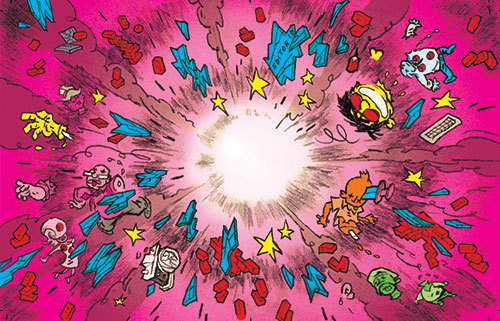 I lyset af terrorangrebet på Charlie Hebdos redaktion i Paris er min fem år gamle tegneserie “Suicide Joe vs. Dead Tree Press” pludselig blevet uhyggelig aktuel. Den skildrer hvad der ville være sket, hvis det dengang var lykkes tre terrorister at komme ind i JP/Politikens hus, og er tegnet som en mave-reaktion, hvorfor den har en noget grov og rå galgenhumoristisk stil (men depressionen skulle også gerne være synlig).