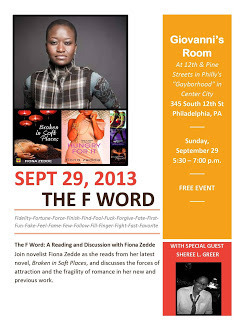 Join novelist, Fiona Zedde, as she reads from her latest novel, BROKEN IN SOFT PLACES, and discusses the forces of attraction and the fragility of romance in her new and previous work.