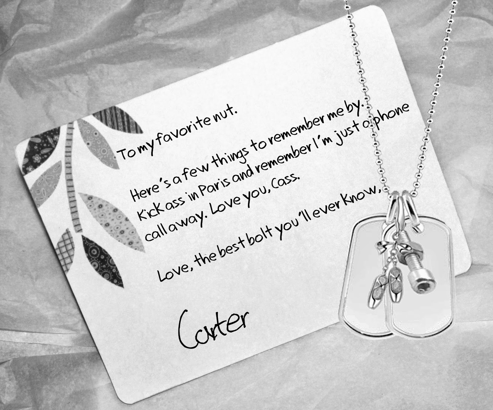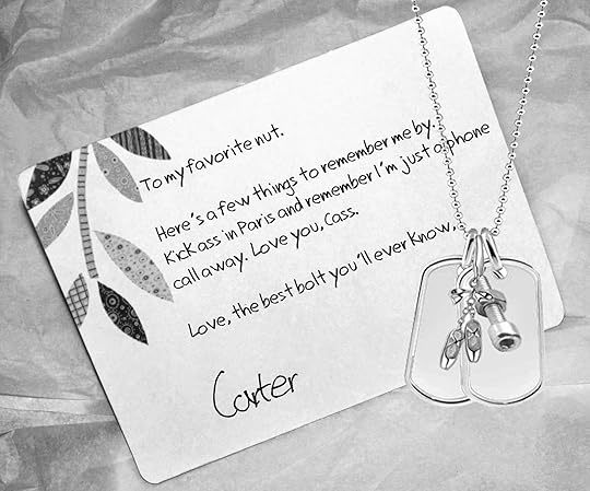 “What’s that?” my dad asked.“A little surprise from Carter.” I handed the chain to him and he smiled before handing it back. “Clever,” he said.“That he is.” I secured it around my neck and found myself reaching for it several times during the flight. I couldn’t wait to call him and tell him how much I loved it and him. I didn’t care that I was leaving for a year. I wanted him and if I had to wait for him, I would. Now I just had to convince him I was the one for him. That would prove harder.Still, I had a smile on my face as I drifted off to sleep, my hand over the charms that had settled over my heart. Appropriate.Little did I know, my phone call to Carter the next day would be too short to tell him anything substantial and the last time I’d hear his voice until I returned to the States. In less than a year, my safe little world would be rocked to its core.* * *Eleven months later…