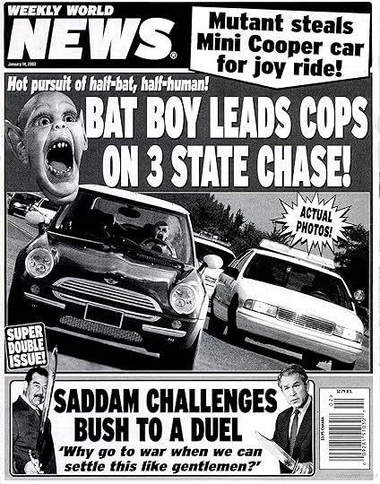 Back in 1992, the Weekly World News began following every twist and turn in the bizarre life of a poor half-bat/half-boy who was found in a rural West Virginia cave. The paper dispatched a crack team of twenty-four reporters and photographers assigned exclusively to the bat boy story.