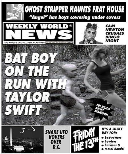 It all started with the satirical supermarket tabloid, Weekly World News. This brilliantly funny newspaper boasted outrageous headlines over the years like “Dead Rock Stars Return on Ghost Plane!” and “Faces of Howard Stern, Pamela Anderson and Satan Appear in Volcano Smoke!” and the classic, “Bill Catches Hillary With Space Alien!,” a story that claimed one of the best subheads in the history of newsprint: “I thought she was gay, says stunned ex-Prez.” The paper once ran a story called, “Surprising Bible Prophecies Your Preacher Doesn't Want You to Read,” about a “turncoat Vatican librarian” who has revealed parts edited out of the Bible, including an unknown corollary to the Tenth Commandment: “Thou shalt not covet thy neighbor's wife unless you in turn are willing to share thine own wife with him.”