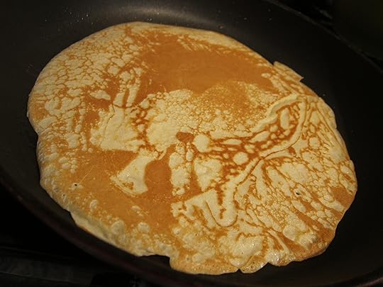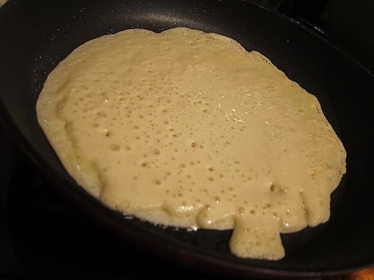 Specifically, German pancakes. They’re pretty easy to make — first, you mix together flour, milk and eggs with a pinch of salt, then heat up a pan with some ghee in it and you’re ready to go.