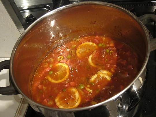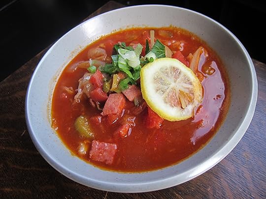 4. Remove spice package. Stir in olives, sugar, lemon, and salt and pepper. Serve with parsley, scallions, and sour cream.