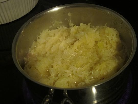 The sauerkraut was tweaked, though. Minced bacon and onions were fried up in butter before being mixed in with the kraut and heated through.