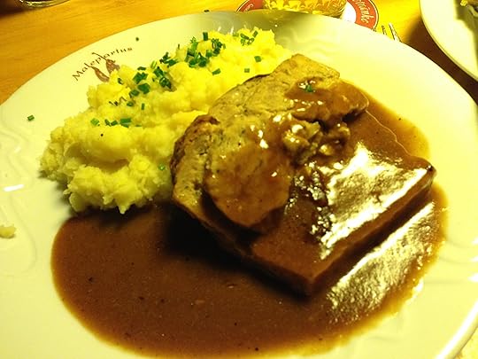 Now, if you’ve read “A Tiger in the Kitchen,” you’re probably aware of my obsession with meatloaf. So when someone explained that Hackbraten (10,50 E) is German meatloaf, I was sold.