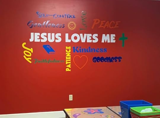 This word wall was put up in one of our church classrooms this past week - ready for when Bible class begins again. Jesus loves me and the fruits of the Spirit - truths!