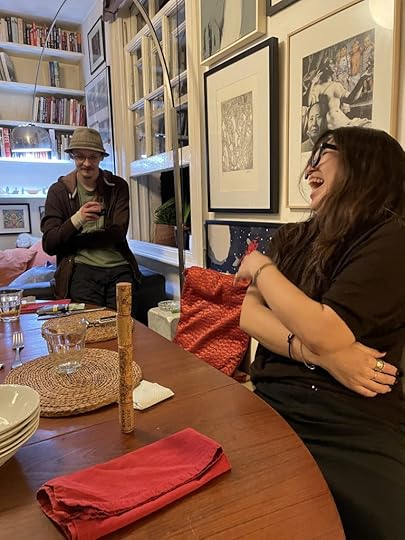 A visit to Paris would not be complete without a dinner with Brunhild Meyer-Ferrari and her companion Junor. Her latest recording, ‘Errant Ear-2024’ has just been released. She worked with her husband, composer Luc Ferrari for 40 years and after his death in 2005 continued to release her own recordings. Catherine cooked a superb dinner for us all, then apparently tried to raise the table. Pix by Junor.