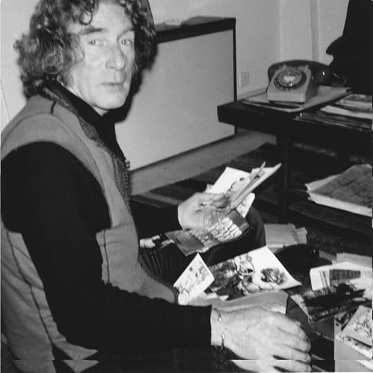 This was a very difficult period in Brion’s life. At the end of 1974 he developed colon cancer and underwent a number of horrific surgeries. I remember visiting him at the Royal Free Hospital in Hampstead where he had his own room. A young man was sitting at the foot of his bed, wearing a Levi jacket and jeans. He casually rolled a huge spliff and fired it up, passing it immediately to Brion. He left shortly afterwards. I asked Brion if this was wise behaviour, as the smell of the joint was still very strong. Brion, who was suffering from extreme depression, beamed at me and began laughing. ‘My dear,’ he said. ‘That was the surgeon who operated on me!’ Brion had a West Indian nurse at the Royal Free who cared for him so well that Brion fell in love and wanted to marry her. They had little in common of course, but her concern and compassion was something that he was unused to, and which, in his vulnerable position, moved him deeply. Here’s Brion in 1972 at 8 Duke St St James’s, working with me on the Burroughs Archive.