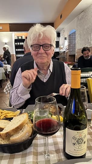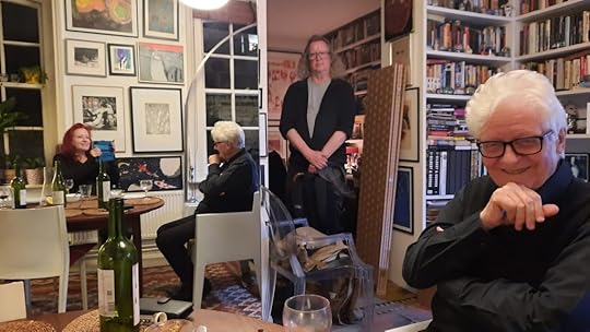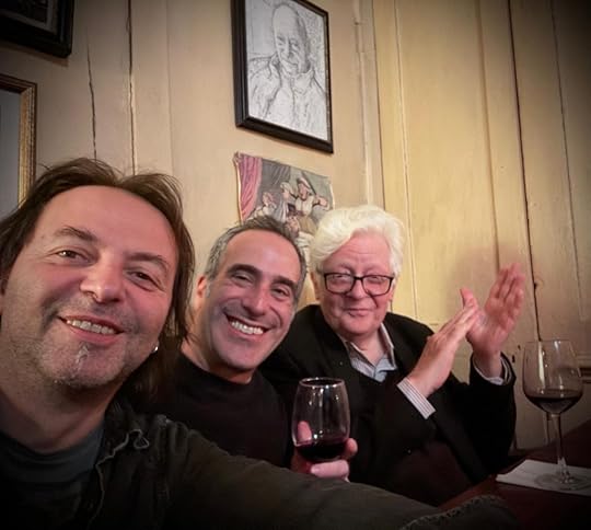 On the 17th Antonio, Jesse and I met at the Academy to further plot the celebration of Allen Ginsberg’s 100th anniversary. The main event will be held at the Queen Elizabeth Hall with panel discussions at Swedenborg House. Here I can be seen applauding one of our joint decisions. Jesse and I had previously visited the Wallace Collection to see the Caravaggio on temporary loan – my second visit. There were a lot of dinners that month: Lucy came to visit and Theo and Mina took me to my favourite local Italian, Demartino, which is about as authentic an Italian trattoria as you can get in London. It was advance planning for my next trip.