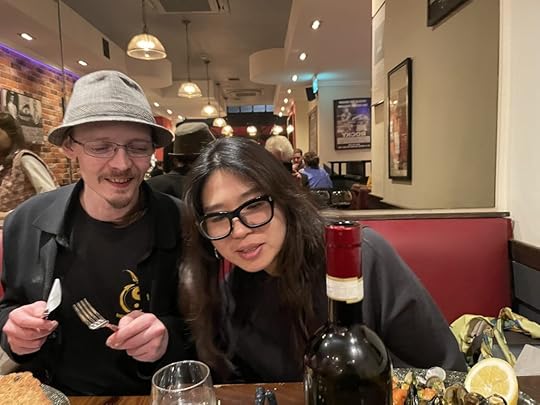 I did an interview at Darren Coffield’s Colony-Room-Green on the 8th. We got a full house, but that’s not difficult as it is a small room and it was free. Here we are with Roberta before she returned to Slovakia for Christmas.