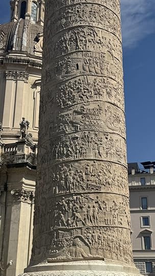 It was a good day to see Trajan’s Column, (AD 113) with strong shadows, though it is now thought the reliefs on the side were never meant for close inspection but were added later as an act of piety when the column became his tomb. For an up-close look, you get a better view by examining the plaster casts in the Victoria and Albert Museum which were made before Rome’s air pollution did its work and which you can get closer to. The pedestal room beneath the column in the V&A used to be a favourite place for staff trysts, but all that changed when the Cast Rooms were restored.