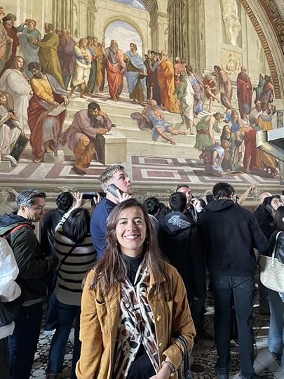 You must pass through the Raphael rooms before you reach the Sistine Chapel and so naturally pass through the Stanza della Segnatura which houses The School of Athens (1509-1511), his best known work; his Mona Lisa, his David. Astonishingly, most of the thick crowds of tourists, following flags or teddy bears on sticks, didn’t stop or even seem aware that they were missing one of the high points of the Vatican Museum. We stopped and had a good look. A few days later, we found a large-scale reproduction of it pasted on the wall of an outdoor café in Trastevere, where the faces were all substituted with contemporary actors and personalities (I didn’t recognise any of them, sadly).
