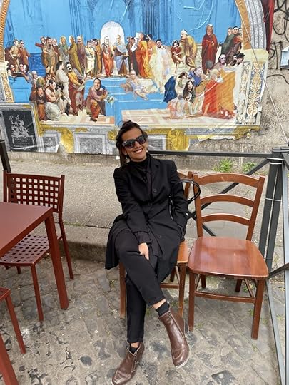Mira showed us around the house. We looked at her paintings which are inspired by yoga and ballet poses – she taught yoga for 20 years – and by the protesters during the 2011 Revolution. We sat for a while on her terrace, then went to visit the local Diwan bookshop. Both Suzy and I had read Nadia Wassef’s autobiography Chronicles of a Cairo Bookseller, so it was great to find that Mira actually knew her. Diwan sells English language and Arab books. The shop could not have been in greater contrast to most of Cairo. A clean sunny area out front where people sat drinking coffee or snacks from the shop café with no beggars and very little passing traffic. It houses a selection of books, mostly in English, concentrating on the arts and self-help. The contrast between the stock and staff in places like this is hard to ignore. Statutory minimum wage for this type of work is EGP 7,000 a month (£103.92) and the average monthly salary in Cairo is EGP 9,780 (£145.19), so it’s unlikely that Diwan pays much more than that, whereas an art book can easily cost EGP 1,000 (£14.85) or more. No wonder Wassef complains of constant theft in her book. There is no solution to this, short of making the shops into collectives and somehow paying back the capital but then why not start their own? It’s unlikely that there are government loans or incentives for this kind of trade. Mira sent a picture of us all waving to Nadia Wassef. Then to the Villa Belle Epoque for a meal in the garden. But for the fact that they don’t serve alcohol, we could have been in Provence.