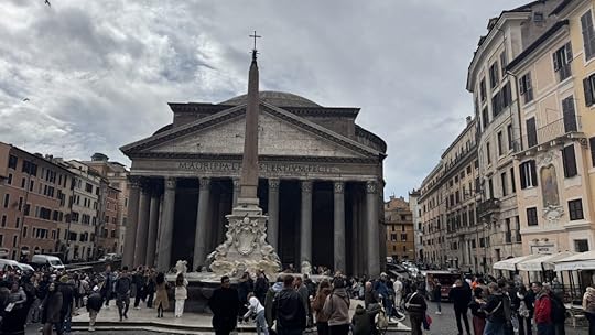 The last time I was in Rome the Pantheon was free to enter. Now that there is a fee there are enormous queues and even the line with tickets bought on-line is long. I was surprised because unless you enjoy architectural history, there is really very little to see. The Pantheon is one of my top ten favourite buildings. It has influenced so much Western architecture and even now is a breathtaking piece of construction. Until a few years ago it was the widest unreinforced concrete dome in the world, and its internal decoration can be found in Regency buildings all across Britain. Of course, Greek Revival architecture stems from Greek originals but the Pantheon with its smooth, more slender columns, was also a template for Britain. (My other favourite buildings include Borobudur; the Hagia Sophia; Karnak; Notre-Dame de Paris; the Alhambra; Casa Batlló and the Duomo di Milano.) The only light comes from the oculus at the top which also lets in the rain, but there is a proper drainage system to cater for that. The main ‘site’ is the tomb of Raphael; the dome is all. Everyone has fun taking photographs.