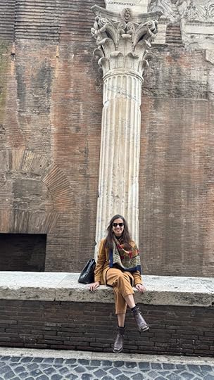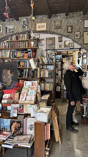 Camila is a wonderful travelling companion. She laughs at my jokes (!) and is prepared to accompany me to lessor known sites that I particularly like. On the 2nd we slowed the pace first by visiting the two little temples just over the bridge from Trastevere: the Temple of Vesta (late 2nd c BC) and the Temple of Portunus (70 BC). Both are remarkably complete. The former is a circular Hercules temple and retains its Corinthian columns though its marble entablature and original roof are gone. I like its size and beauty – the columns come from Greece and have integrated bases. And just next door stands the perfect little Temple of Portunus, set on a high podium to keep it clear of the flooding Tiber. We were on our way to Trastevere to meet Camilia’s friends. It was a truly international lunch: Benjamin is from Iran, I am a Brit, Camila is Brazilian and Britney is from Hawaii. And we all like wine. We did pop into a bookstore on the way back. Being an old bookseller – in every sense – I can’t help but check them out. This is the Open Door bookshop, a very nice place.