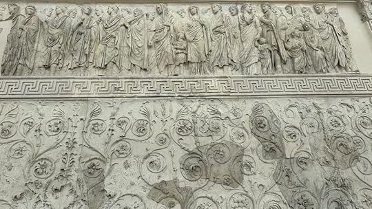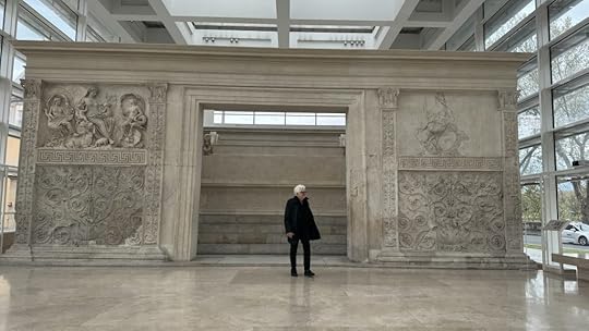 This was our day to visit the Villa Borghese but we stopped off enroute to see the Ara Pacis (13 BC). This altar dedicated to the Pax Romana of Augustus is no longer where it was originally built. It was found in pieces, many of which were then scattered to collections in Naples, Florence, Vienna and Rome but by 1937, after a very large new find, the pieces were reassembled (except for those in the Louvre who, already pissed off at having to return so much of the stuff that Napolean stole, are represented by a cast.) There is a lot of controversy over the overblown installation building by Richard Meier that many people feel is so unsympathetic to the surrounding architecture it should be pulled down. But the altar itself has a remarkable frieze showing priests and the Imperial family chatting and interacting with small children holding their hands or tugging at their togas. Different as Classical Rome was, with its gladiators and Vestal Virgins, these human gestures resonate for me and provide a connection to our ancestors across two thousand years.