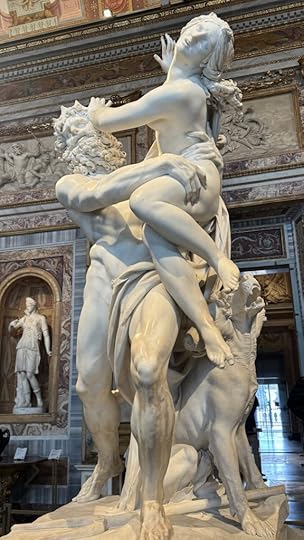 You can’t just show up and book a ticket at the Galleria Borghese. The building stands over a network of tunnels and caves, some from antiquity some natural, and cannot take too much weight. Only 300 visitors are permitted on the ground floor and just 90 at a time on the first floor. Consequently, admittance is restricted to tour groups which you must book ahead. Unfortunately, this means you are at the mercy of your tour guide. Ours was a great fan of Bernini, whose most celebrated early sculptures are all there, and spent an inordinate amount of time extolling his virtues. I can’t stand Bernini and see his statues as contrived and artificial, little more than the 17th century equivalent of Playboy magazine. However, in every room there is a Bernini there is also a group of Roman statues which to me are of far more interest.