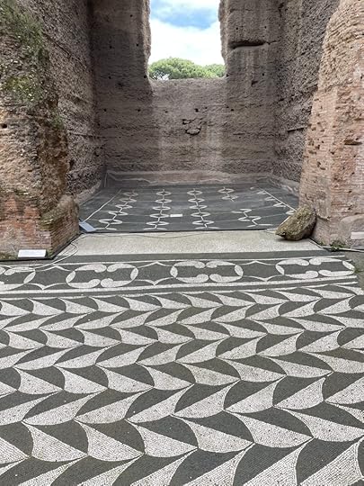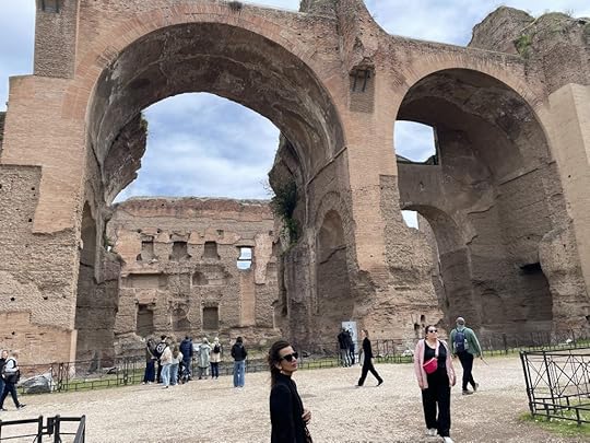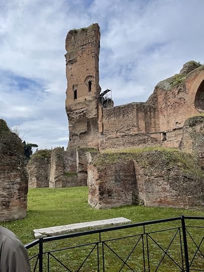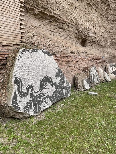 The next day we visited the Terme di Caracalla, (211-16 AD) south of the Colosseum. These are huge, capable of holding as many as 10,000 people and were in use for more than 300 years. As usual the Christians robbed the marble for their ghastly churches and moved the statuary to their palaces: the Farnese Hercules now in Naples is from there as are the winged thunderbolts in the Duomo in Pisa. But a huge amount remains: large areas of mosaic floor are intact and even fragments of wall mosaics are on display near their original positions. The site includes a large central garden which, in the spring sunshine, was quite delightful.