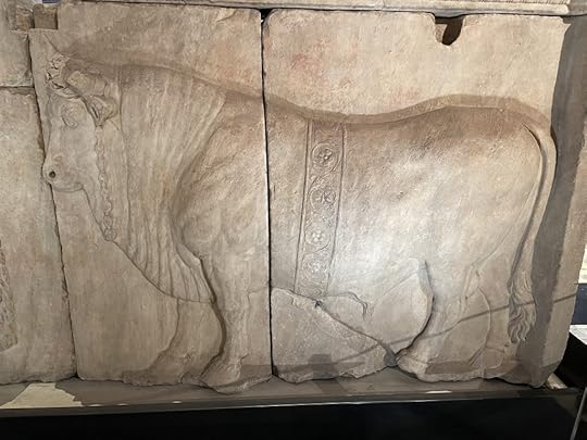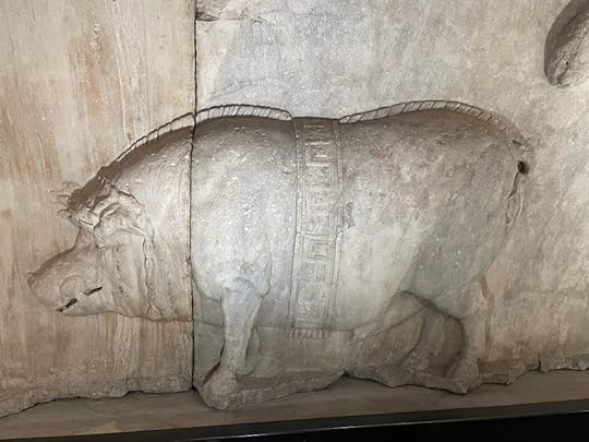 The weather held and using our Archaeological Park membership cards we covered the whole site from Trajan’s Column down to the Colosseum. This is the area of the Imperial Forums, and there are a number of them, making it quite hard to decipher. In fact, it would take a week to do a proper historical tour of the site. We just wandered and absorbed the atmosphere. To the north-west you get a good view of Trajan’s Markets, basically a Roman shopping mall, nestled closely against his forum. It recently featured in Emily In Paris-Rome if you watch such a thing. Some buildings are open and I loved the life-sized livestock in the Forum Romanum, particularly the pigs.
