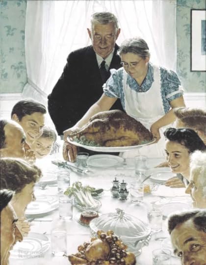 In today's world, ravaged by wars and starvation and our own civil strife, Rockwell's poignant image still means as much now as it did then. It is the iconic image of thanksgiving, family and joy. May we all experience joy and togetherness of family and thankfulness this holiday. Wishing you all peace and good food this Thanksgiving.