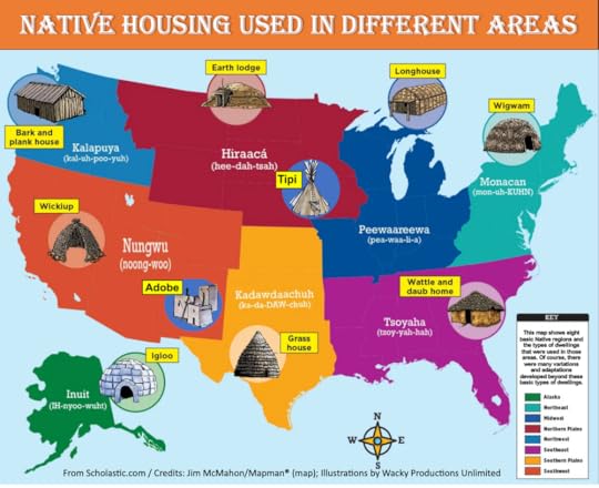 Americans are most familiar with the iconic tipi, that was used widely by the Plains Indians. Tipis were made of long poles and animals hides, often of buffalo because the hide was very large and tough. The tipis could also be quite large and accommodate an entire family.