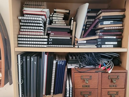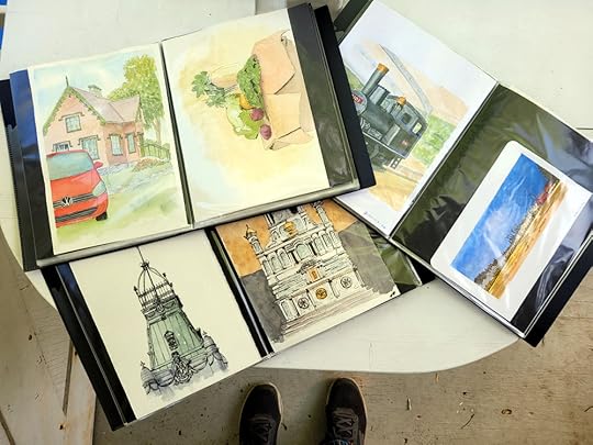 “I thought I was the only one who didn’t look at my old sketchbooks. I recently filled two banker’s boxes and put them in the basement because I ran out of shelf space. (I did keep out the ones that have course material in them as I sometimes do go back and look at those.) I was tempted to throw away rather than store the old ones. I’d love to hear your thoughts on this whole subject sometime!”