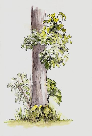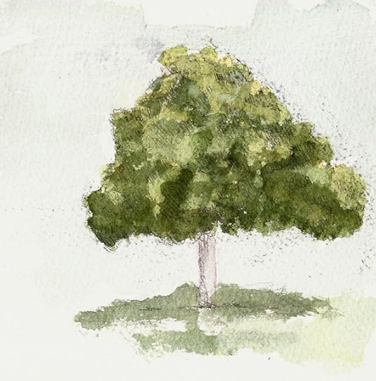 Here’s a tree I sketched on location. It’s horrible, I know, but if I’m on location, I want to draw a tree in a few minutes. Unfortunately the drying time of Fabriano Artistico is just too long for that purpose and everything melts together. I think in these situations, doing watercolor on Stillman & Birn Alpha paper would be better. I’ve heard Liz Steel suggest the same thing.