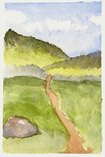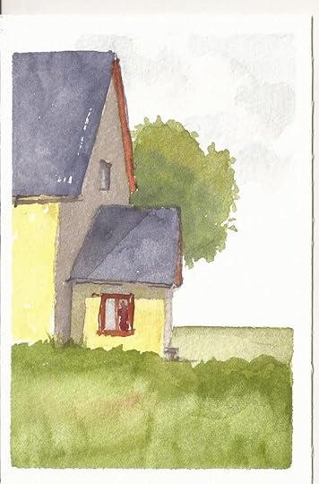 Here is a great example of my loss of perspective as I chase wet paint around the paper. This sort of thing is a breeze if I’ve got a pen in my hand but with a watercolor brush my limited brain power is consumed by the medium. I don’t know what to say about the other sketch except that I think I’d decided to do a “traditional” landscape but it too got out of hand, with everything blending to mud.