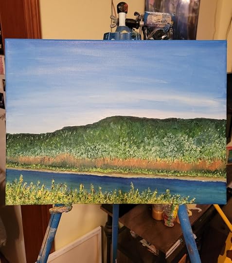 I think it would be fun to show how this one is progressing. I’ve always enjoyed painting trees, but rarely like to put leaves on them. I love the feelings that empty trees give off. Plus they remind me of spider webs. There is also a tiny cave there too, not sure what lives in there….