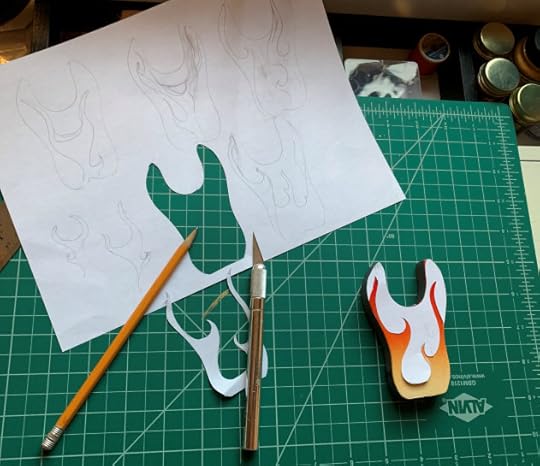 I tried out different flame designs for the top piece to be sure. I think I have commitment issues.