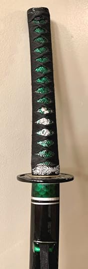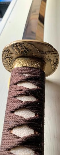 Katana have been a big deal in my novels Ariel and Elegy Beach, and I’ve owned a few cheap iaito (dull practice swords), and trained with them (unsupervised and wholly ignorantly).  Once I started Batto, I found I really wanted to learn more about the swords themselves: Take them apart, clean them, repair them, maintain them–and customize them.
