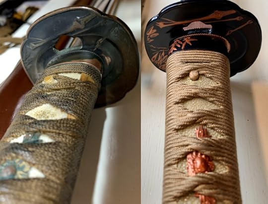 Katana have been a big deal in my novels Ariel and Elegy Beach, and I’ve owned a few cheap iaito (dull practice swords), and trained with them (unsupervised and wholly ignorantly). Once I started Batto, I found I really wanted to learn more about the swords themselves: Take them apart, clean them, repair them, maintain them–and customize them.