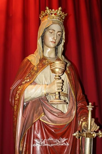 Chango. Here he carries an ax. Below is Saint Barbara. Can you see the resemblance? They both carry sharp objects and wear red. They also both like lightening and thunder.