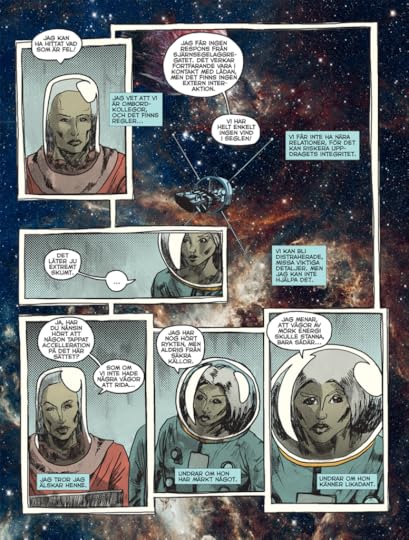 Sannolikhetsdrift/Probablilty Drive is a space operette in comics form, originally created for CBA vol 64. It was made to connect to a guitar body I painted for Ruokangas Guitars and their Art Infused Collection. Elements from the painting were used in the comic, and the story itself evolved due to that collaboration.
