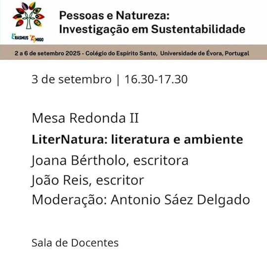 A 3 de setembro, na Universidade de Évora, converso sobre literatura e ambiente com Joana Bértholo. Moderação de Antonio Sáez Delgado.