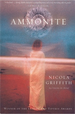«Ammonite» (1993) fue la primera novela publicada por Nicola Griffith, recientemente reconocida como la última Gran Maestra por parte de la SFWA. Trata sobre un misterio biológico, una colonia perdida y recientemente recontactada (un escenario que retrotrae necesariamente el ciclo Hainish de Ursula K. Le Guin), donde un virus provocó en el lejano y ya ni siquiera legendario pasado la muerte de muchas mujeres y de todos los hombres. Tras la recolonización por parte de una expedición militar, la Compañía (la típica megacorporación ultracapitalista) se encuentra con un grave problema, pues no puede permitir que la epidemia se extienda más allá de Jeep (que así se llama el planeta), ni tampoco perder la inversión que ya ha efectuado.
