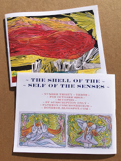 At the moment, I've got 40 monthly subscribers. I'm making only 100 copies of each installment of THE SHELL OF THE SELF OF THE SENSES. I plan to keep doing this, if you join in, you'll be part of a select few.