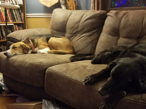 Our eldest dog has been worrying us for a while. He suffers from hip dysplasia and goes to physical therapy for it, but the real issue is cancer. He nearly died from a ruptured spleen this summer, but fortunately was saved by the emergency vet. Now he’s undergoing chemotherapy and doing well, but we’ve been warned he has a very aggressive form of cancer, so we’re just taking it one day at a time. We’ve had him since just before we married, eleven years ago, and losing him is going to be brutal.