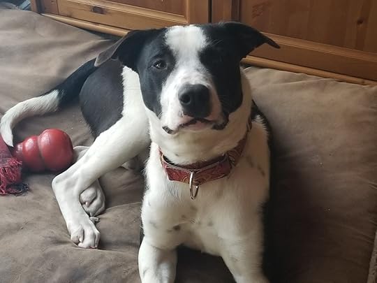 But when he is calm, he’s a sweet, loving pup we can’t resist. We’re doing our best to help us all adjust to one another. Erich and I are in our 50s and have health issues that limit how much we can run around with him. I take Duke and Nelson for walks in our forest once a day, we’ve booked him into doggie daycare (though he’s occasionally had to be given timeouts there for fighting over toys), and we have a dog pen he and Nelson can run around in. Nelson doesn’t seem very interested in playing with Duke, most of the time. Sometimes. But he doesn’t have nearly as much energy as Duke has (He’s five and a half, now—no longer full of puppy energy), and it’s been a challenge to get them to play nicely together. Nelson can hold his own against Duke, despite Duke being a bit larger, but he doesn’t always seem to like it. So we’re trying to keep an eye on them and pull him out when he’s tired.