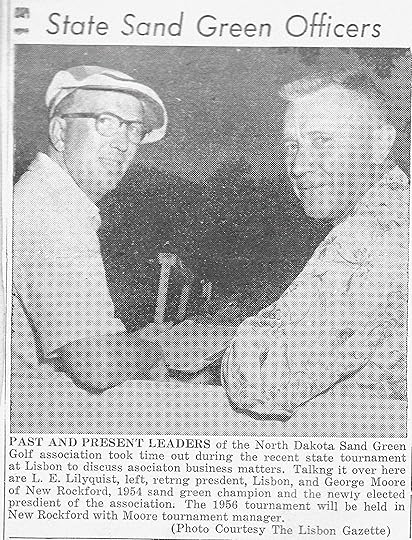 On this 67th Father’s Day without my own father to honour, I’m thinking especially of George Wellington Moore and the 13 short years I had to enjoy being in his presence as his daughter. The loss of him in a car accident in September 1956 was the single-most tragic happening in my life. I’m grateful, though, for the many memories of the intensely loving, caring and uniquely present father he was. This newspaper clipping is the last photo my family has of him. I think he brought home at least one golf trophy a year, plus teaching my sisters and me and countless others to golf. I also cherish the two photos my mom took on New Year’s Day 1944 when Dad first introduced me to a golf course shortly after I had started walking. It was a rare snowless time in wintery Maddock, North Dakota and he just couldn’t resist hitting a few golf balls before the snow came. RIP Dad! I wonder if you’ve been golfing in heaven!