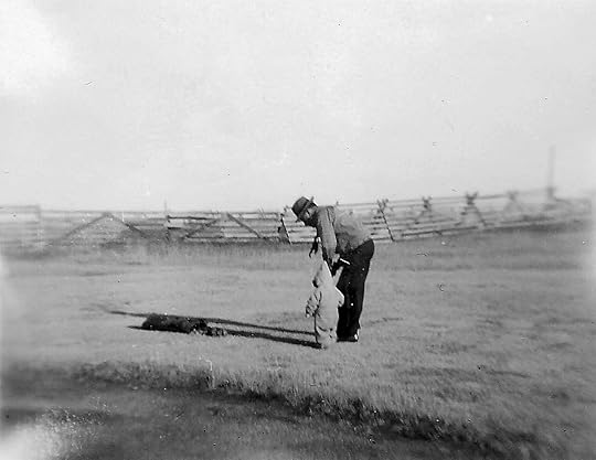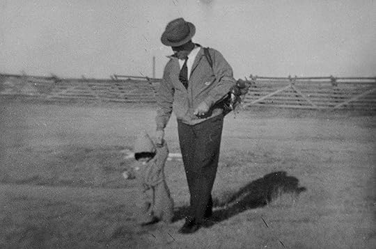 My younger sister Doreen with Dad and me (circa 1954) when Dad had taken us along on a business trip from our home in New Rockford to his hometown and our birthplace, Maddock, North Dakota.