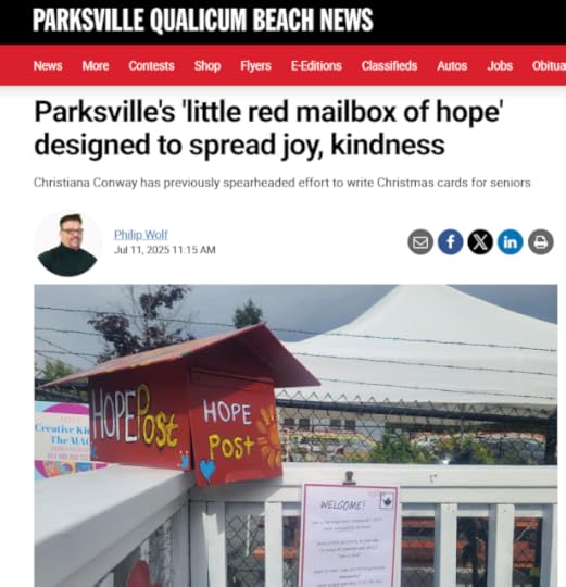 Parksville's 'little red mailbox of hope' designed to spread joy, kindnessChristiana Conway has previously spearheaded effort to write Christmas cards for seniorsChristiana Conway wants to spread a message of joy and hope to residents in the Parksville area.