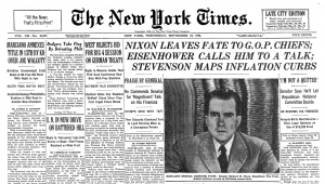 Forget that Jersey Joe Walcott was defending his World’s Heavyweight Boxing Championship that very hour against a guy named Rocky Marciano (complete with Rocky’s famous knockout punch)—people wanted to hear what this man accused of financial improprieties would have to say. Would Nixon resign from the Republican ticket? Would he tell the truth? Would he really give out his personal financial details when no other politician had ever done so in such a public manner?