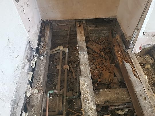 Dry rot discovered 21st July. Flooding and a well discovered in August.