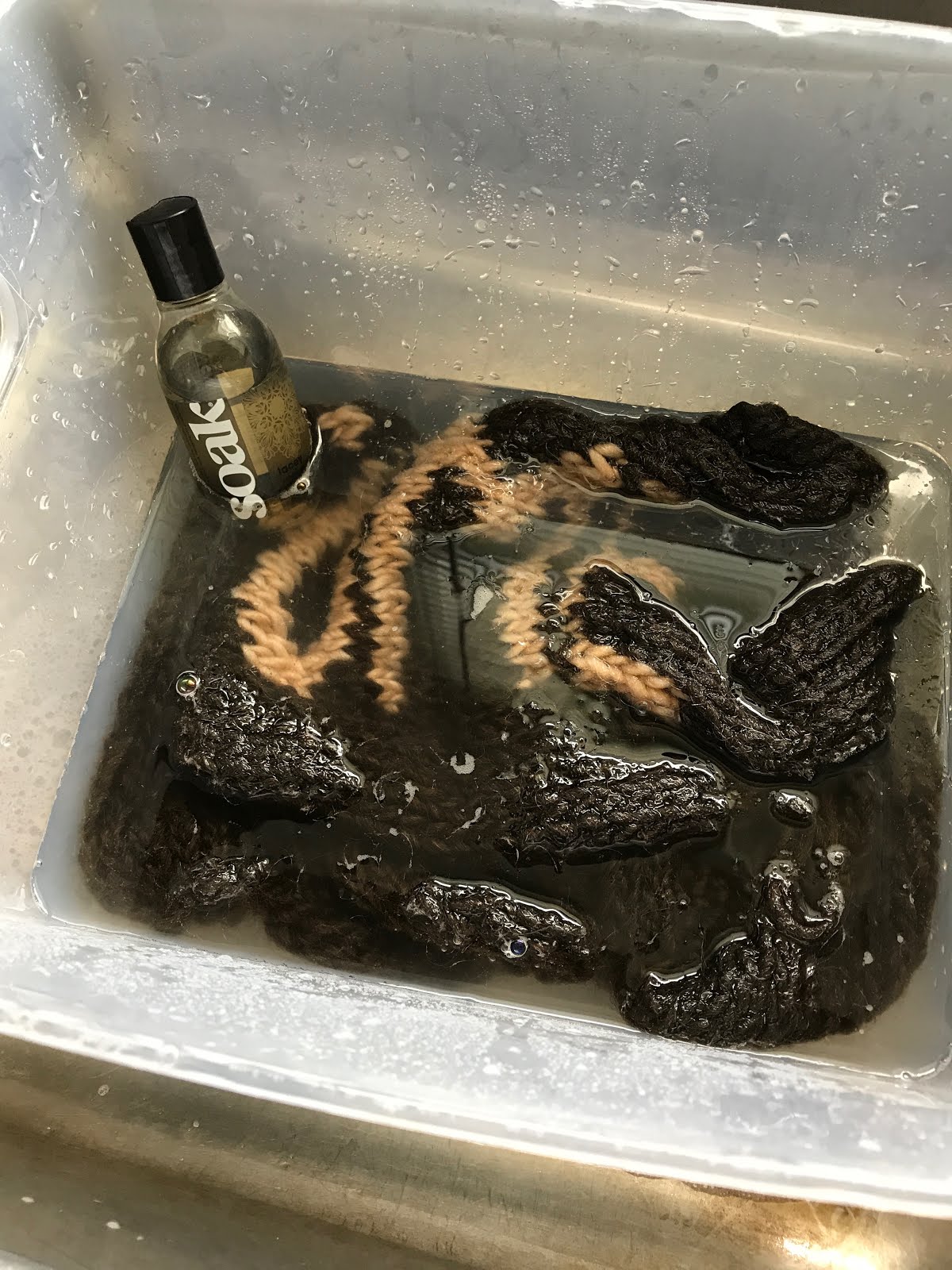 Instead, I grab the pillow out of the A-1 water, rinse it, put in more SOAK, soak it again, rinse it again, roll it in the towel, and pin it down on the drying board.
