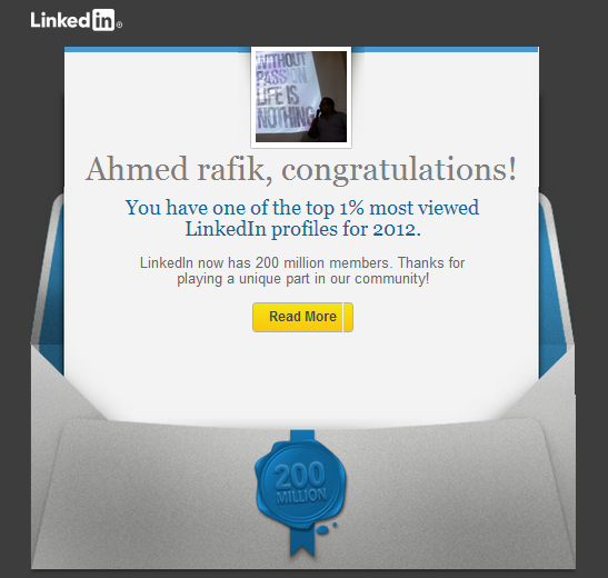 I just received this message from Linkedin, I became one of the Most Viewed Linkedin Profiles for 2012.