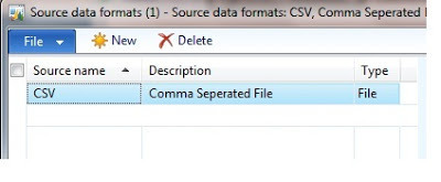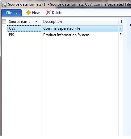 Give Source Name e.g. CSV in Description column write Comma Separated File, inType column select File, then assign the additional details about the data source in right pane of Source Data Format Screen.