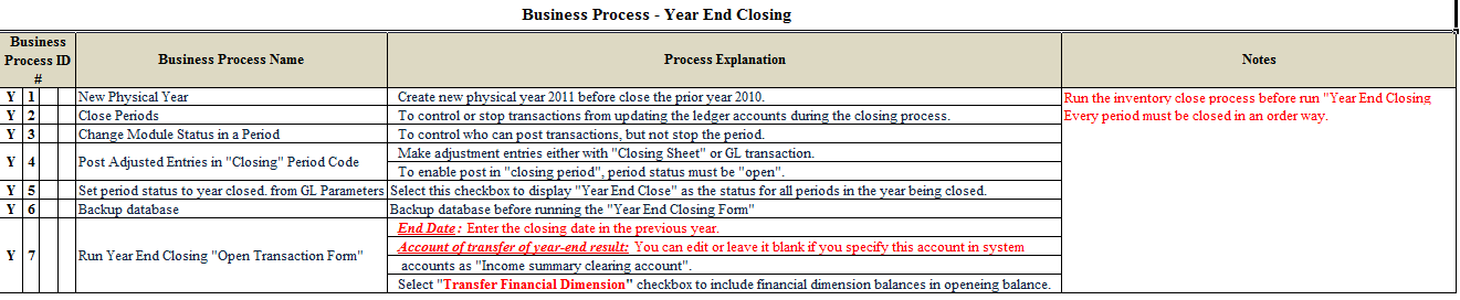We developed excel sheet contain the procedures and processes for Year End Closing on AX 2009.