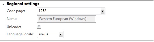 1. Code Page - Character encoding for the file, there are different options available select your desired one, for our example we will select Western European (Windows) 2. Unicode - Select this if your file is using Unicode, we will not use this option for our example3. Language Local - Select Language, we will use en-us for our example